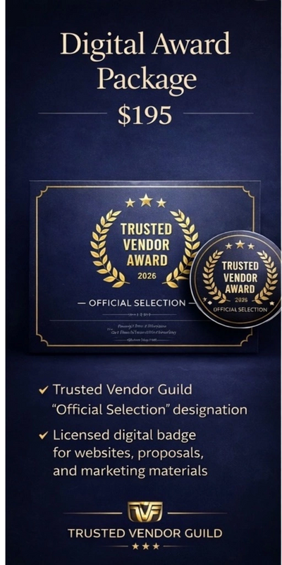 Vendor Guild recognition helps prospective clients quickly identify service providers who meet baseline professional standards in conduct, transparency, and presentation.